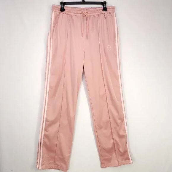 Sergio Tacchini Miss Orion Track Pants Pink Women Size XL Fleece Lined Zip Ankle