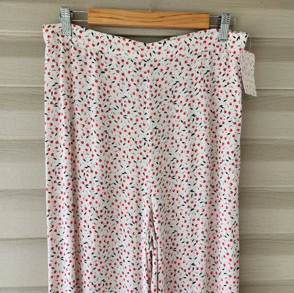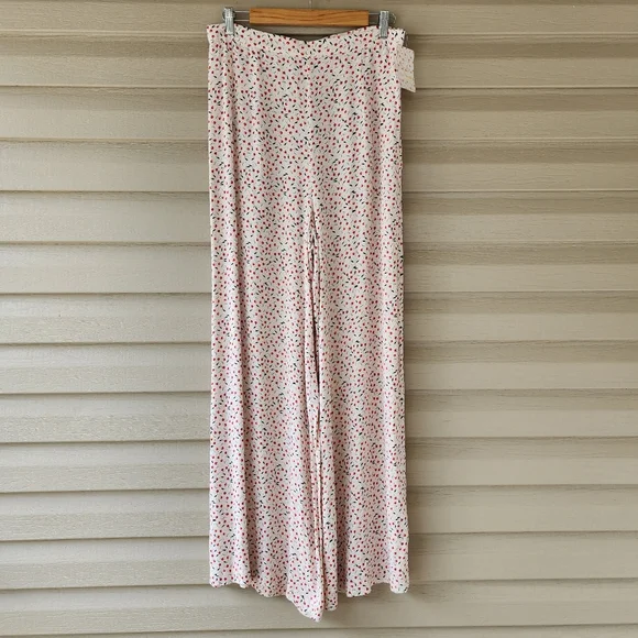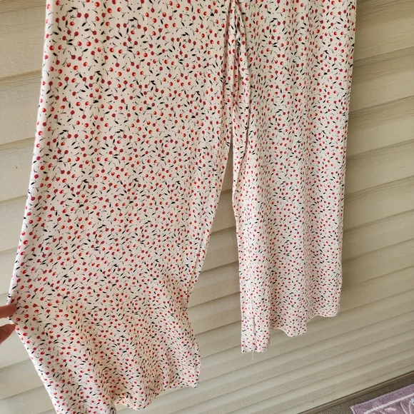 new with tag no stains no rips no flaws size 10ivory cherry printwide leg viscose and rayonwaist laying flat-15 rise-15inseam-31B5