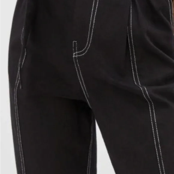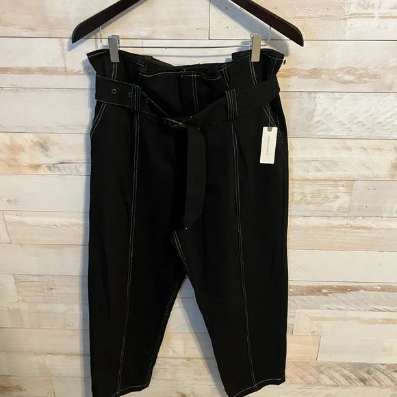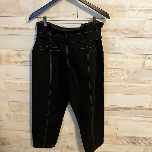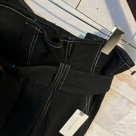 NWT black Amos Contrast stitched black pants size M by Anthropologie inseam 25” cotton belted