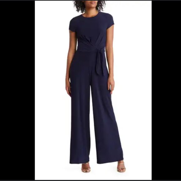 Vince Camuto Womens Cap Sleeve Bateau Neckline Jersey Jumpsuit NAVYNEW WITH TAG!Size: 6Features: Cap sleeve, bateau neckline, casual, jersey, jumpsuitExude Confidence: This jumpsuit is made to flatter you; add to your work wardrobe; vacation wardrobe, event wardrobe, and more.Casual Luxury: Combines comfort & elegance; this jumpsuit for women offers effortless style for at work or on-the-go looks.Event Ready: This jumpsuit is ideal for a variety of occasions; wear as a work outfit, dinner outfit, formal event outfit, wedding guest outfit, and more.Classic Style: Look and feel your best in this classic Vince Camuto jumpsuit.TL004