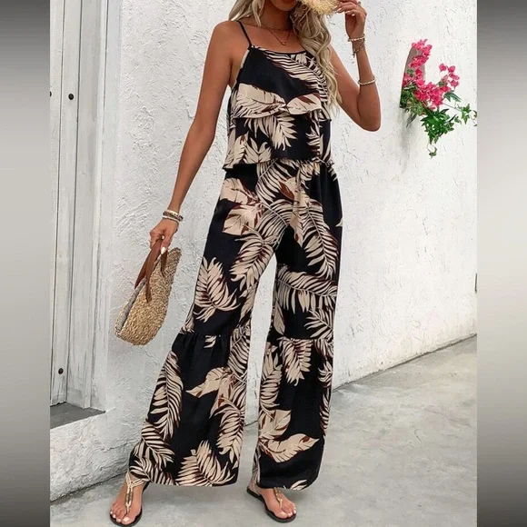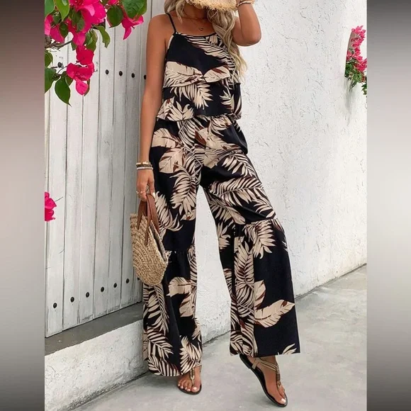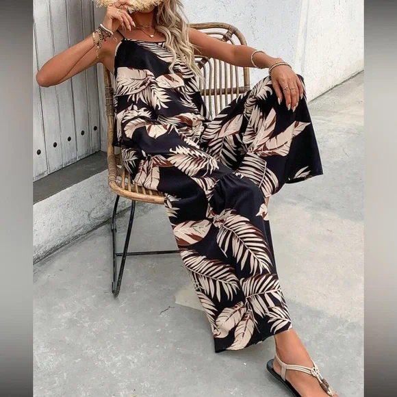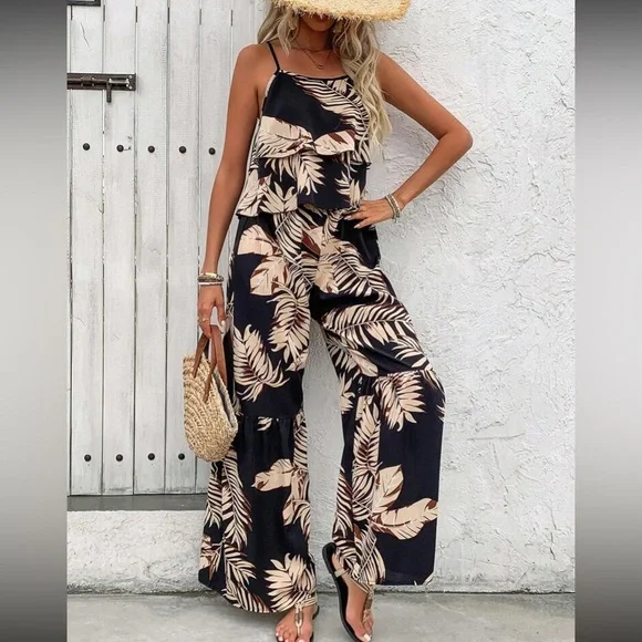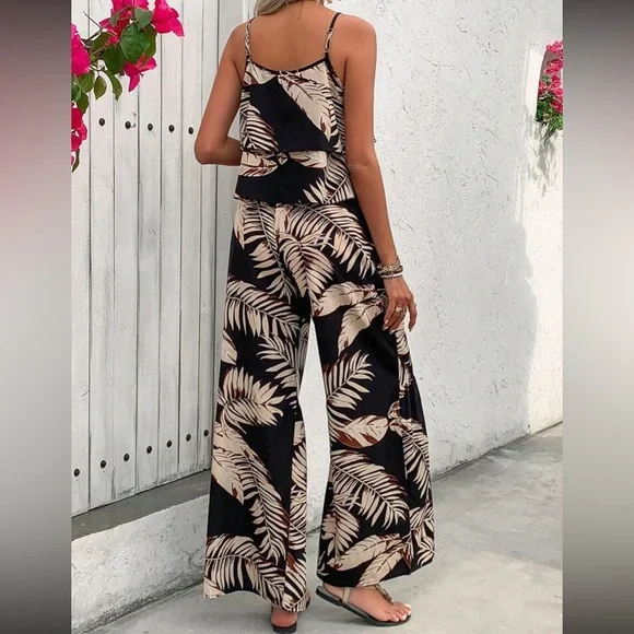 Boho floral print cami top and wide leg pants set