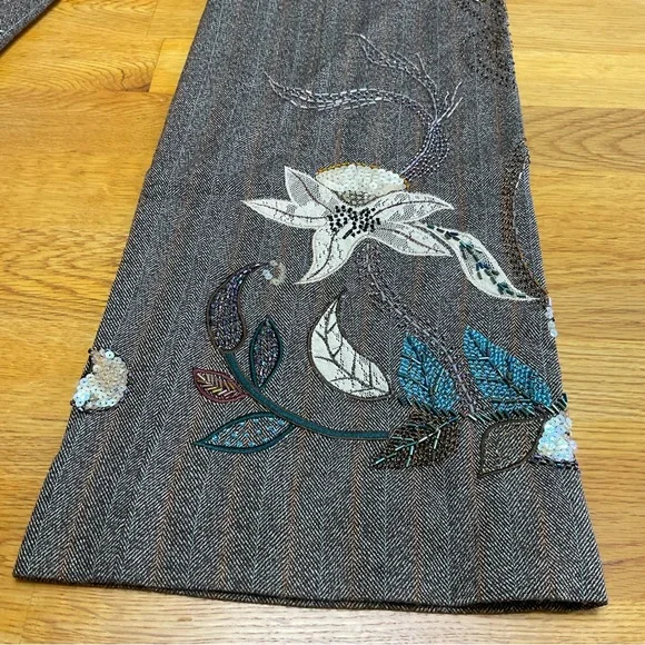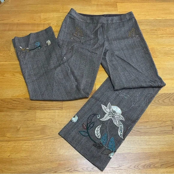 Y2K Junior EXPRESS STRETCH Herringbone Beaded Dress Pants Size 5/6VintageFloral Details Beaded, Embroidered & Sequin AccentsSlit PocketsZip & Button ClosureLinedLow RisePre-owned...