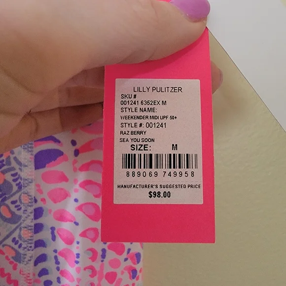 Brand new with tags Lilly Pulitzer Weekender midi leggings. UPF 50+ fabric. Raspberry Sea you soon. Size medium. Check out my closet for tons more Lilly Pulitzer listings! AC6