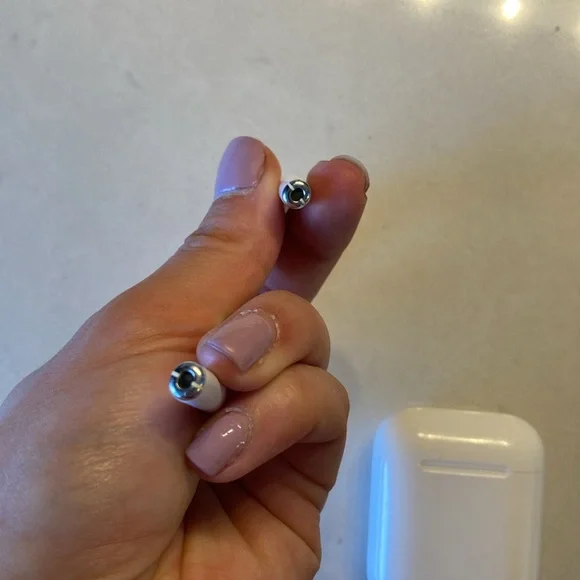 Used condition. 1st generation air pods. Still works and are in great condition. I will clean them up more once they are sold. Selling because I have another pair and wanna get something new. Please look at all the photos and videos. Final sale!