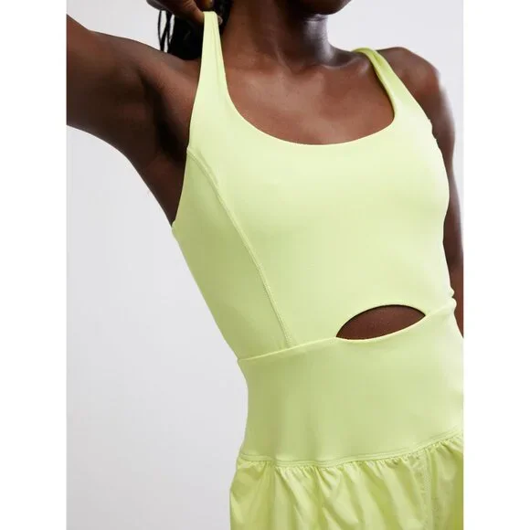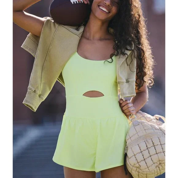 The perfect one-and-done running outfit, this easy romper features a slim-fitting top with a cooling cutout at the center paired with airy retro-style shorts.▪ Strappy cutout back▪ Pull-on style▪ Back zipper pocketFP Movement:A destination for life well-lived, Free People Movement offers performance-ready activewear, practice-perfect styles and beyond-the-gym staples. We believe in the power of community, in supporting and lifting each other up and always #movingtogetherContents + Care:▪ 68% Nylon, 32% Elastane▪ Lining: 81% Polyester, 19% Elastane▪ Lining: 94% Polyester, 6% Elastane▪ Shorts: 100% Polyester▪ Machine Wash ColdMeasurements for a size Small:▪ Waist: 25.5 in▪ Inseam: 2 in▪ Bust: 28.5 in▪ Hips: 44 in▪ Rise: 14 in⭐PLEASE NOTE⭐▪ All photos are stock photos, color may vary slightly▪ All items are New With Tags▪ We can NOT ship to PO Boxes or outside the continental US (HI, PR, VI)▪ Due to a high volume of orders, shipping may be slightly delayed▪ All sales are final
