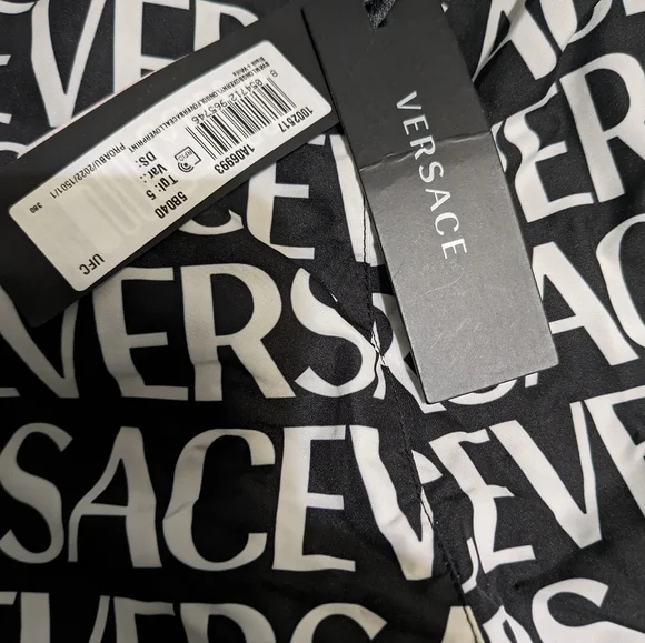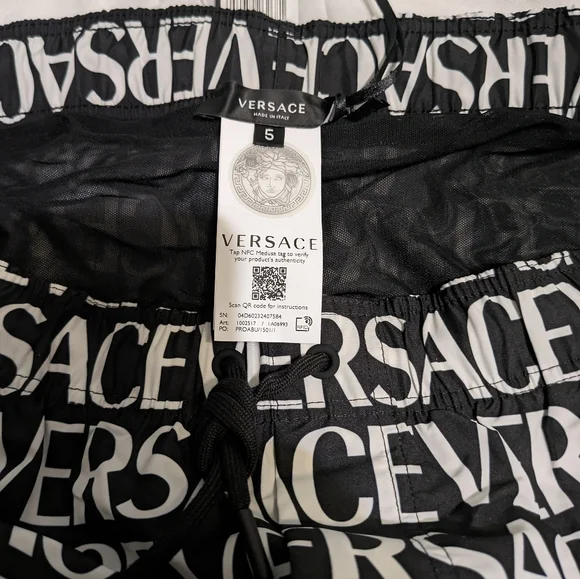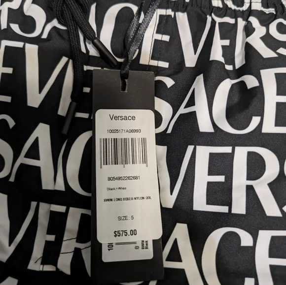 Black/ White VERSACE AO Board Swim Shorts. Direct from Versace. Size 5 / US Large.