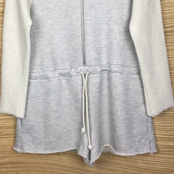 Mara Hoffman Active Terry Fleece Zip Up Hooded Romper Cover Up Shorts Gray Sz S