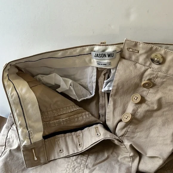 Jason Wu | High Waist Cargo Khaki pant ankle length button front. Cotton stretch. Excellent used condition. Bundle to save. FAST SHIPPER. !Measurements flat layWaist 14”Rise 12”Inseam 26”Bottom width 8”See photos for more details