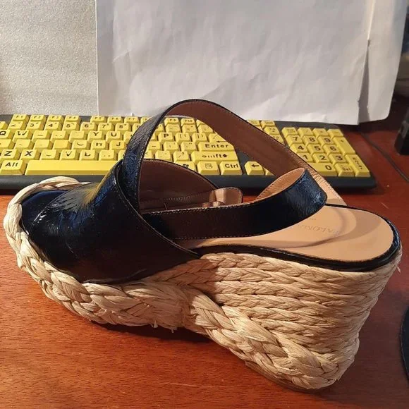 NEW ! Paloma Barcelo Atuel Lory Platform Wedge Made In SPAINBlack Sz US11/ EU41COT1000324NST005