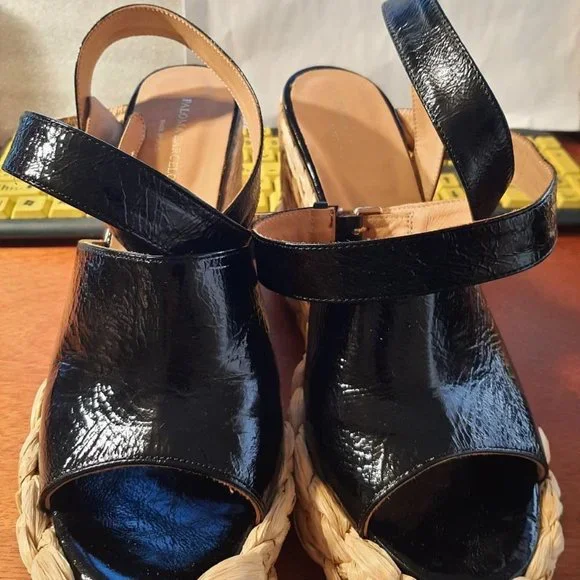 NEW ! Paloma Barcelo Atuel Lory Platform Wedge Made In SPAIN Black Sz US11/ EU41