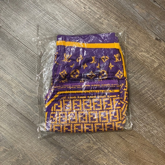 Chinatown Market Secret Club Monogram Mesh Shorts Size small Color is a beautiful color block of Purple and Yellow.Designed in Los AngelesCustom cut & sew Heavyweight jersey mesh...