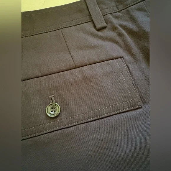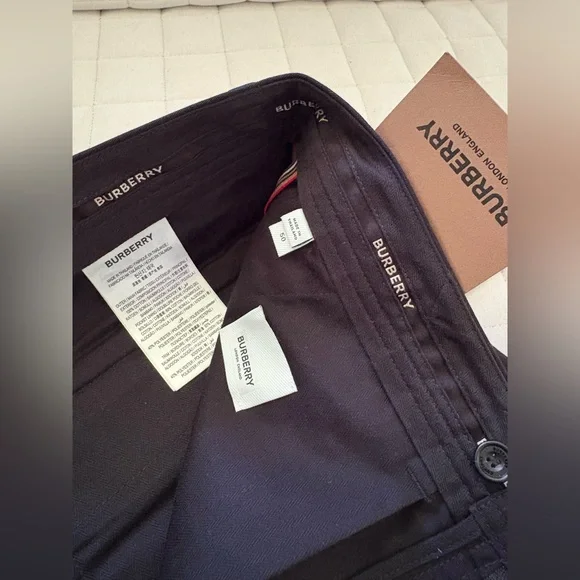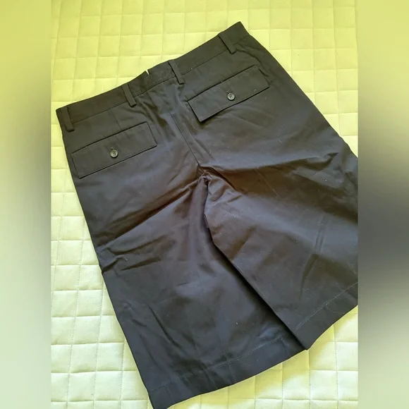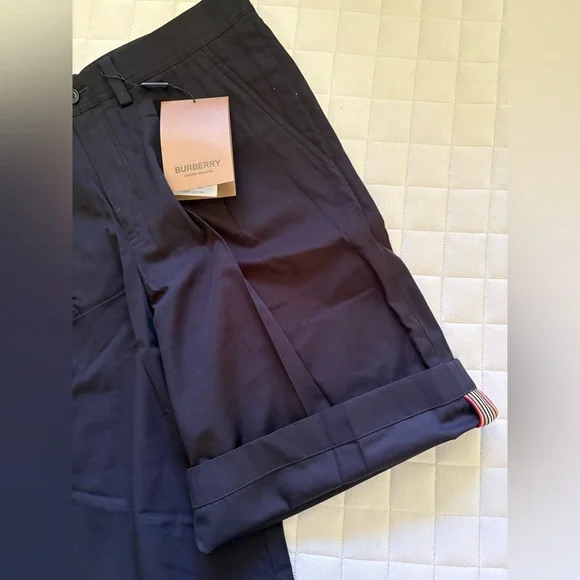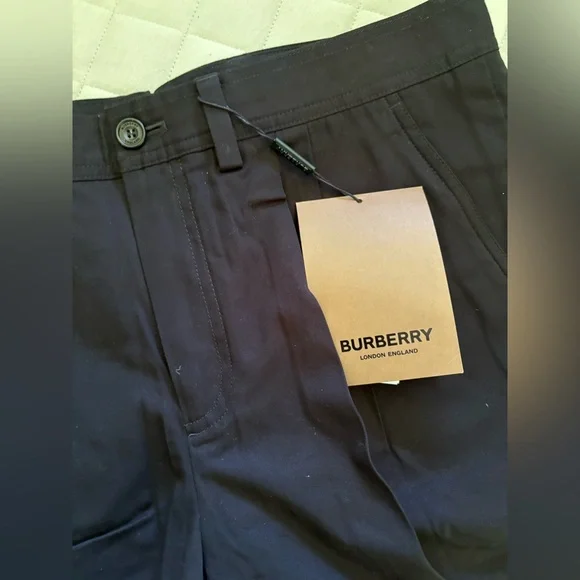 These Burberry shorts feature a sleek flat front design in a classic black color, offering a sophisticated and versatile look. Crafted with precision, they provide a tailored fit that sits comfortably above the knee, making them ideal for any casual or semi-formal occasion.
