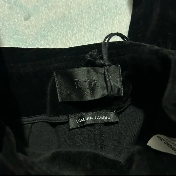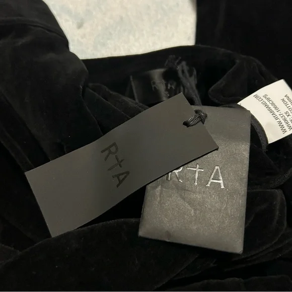 NWT New with tagOriginally $495RtA Margot PantsRtA´s cotton-velvet ´Margot´ pants have a cool, fold-over waistband that´s knotted at the side to look as though you´ve fastened a jacket around your hips. They´re designed with tapered legs with cropped hems that hit just above the ankles. The patch pocket enhances the utilitarian feel.100% CottonItalian Fabric100% cottonSize XSApproximate measurements in inches:Waist (flat across): 13Rise: 12Inseam: 26 Check out my closet for bundles!