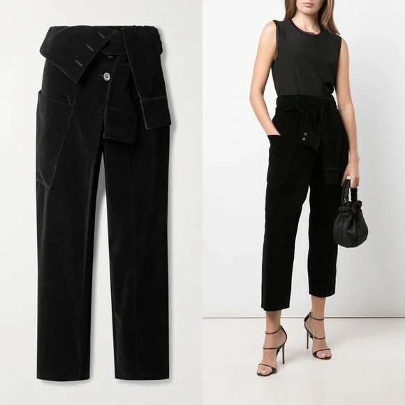 NEW RtA $495 Margot Black Velvet Foldover Waist High Rise Pants Size XS