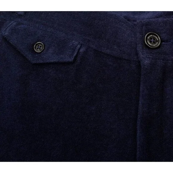 Ralph Lauren Purple Label shorts Medium cotton buckle side $395 terrycloth