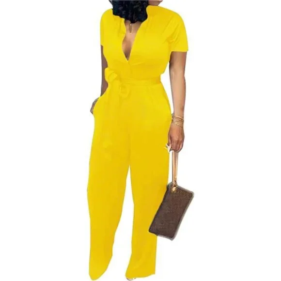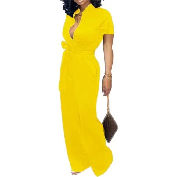 *Fabric type95% Polyester, 5% Spandex*Care instructionsMachine Wash*OriginImported*Fur description95% Polyester, 5% Spandex*Design:V neck, Full length pant, Elastic waist,Plain color, Front decorative buttons,short sleeve,Long pants jumpsuit with pocket, Belted wrap romper*Occasion: Suit for Casual Outdoor,Party, Cocktail, Evening, Club, Wedding,Vacation, Beach, jogging,Daily life*High quality stretchy and soft fabric made the fashion jumpsuit works with most body types.*Match:Perfect to pair with sneakers, heels or sandals.*This casual jumpsuit with high quality and unique design, simple but not dull, casual but sexy.This is a must have in your spring and summer wardrobe.*Casual Solid Short Sleeve Elegant Stand Collar Button Down Long Pants Rompers Straight Club Outfits With Pockets Belt*Casual V Neck Short Sleeve Printed Jumpsuits Elegant Buckle Ziper Long Pants Rompers Straight Club Outfits With Pockets Belt*Casual V Neck Short Sleeve Printed Jumpsuits