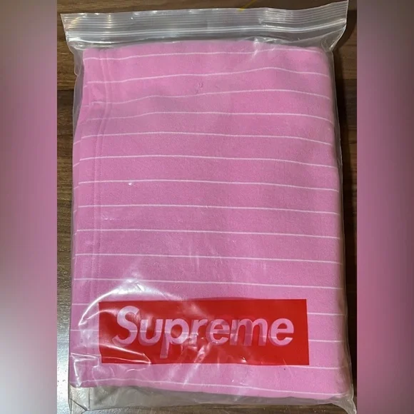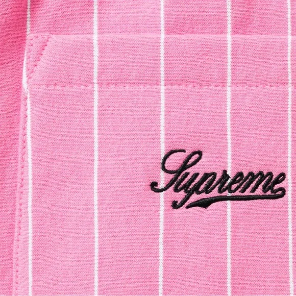 Supreme Pinstripe Fleece Sweatshort in Pink SS24 Men’s Size medium Brushed-back fleece with on seam hand pockets and single back patch pocket. Elastic waistband with interior drawcord. Embroidered logo on back pocket.. 100% authentic guaranteed. Brand new with tags in original packaging.