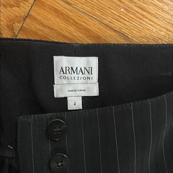 Armani Collezioni Black Pinstripe Straight Leg Pants
