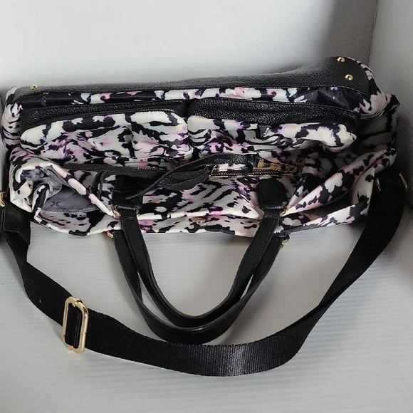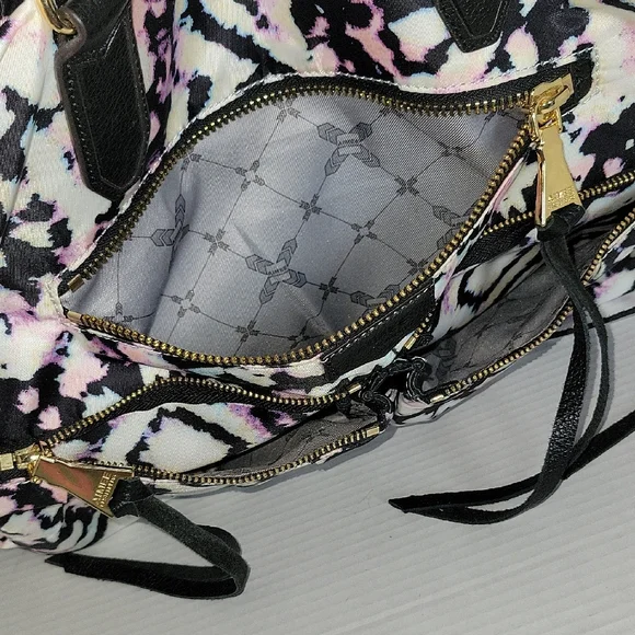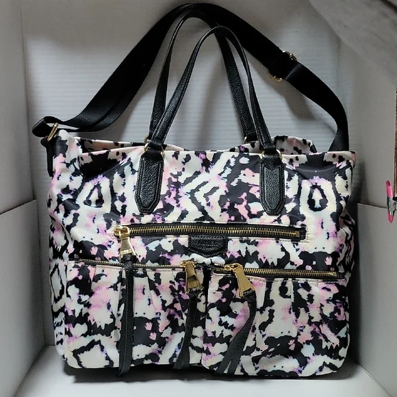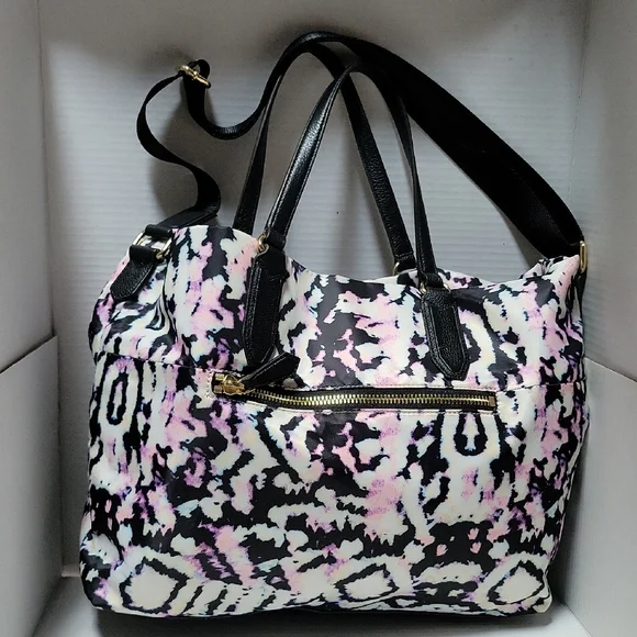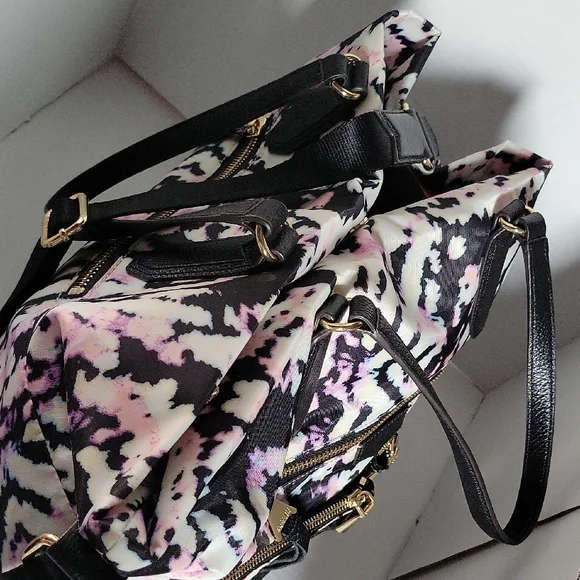 Aimee Kestenberg Bag Shoulder Tote Crossbody Nylon withLeather trimPink,Purple, Black & White4 Exterior Zip Pockets2 Slip & 1 zip interior pocketsMagnetic snap closure...