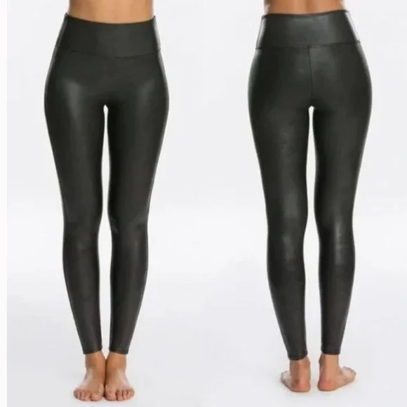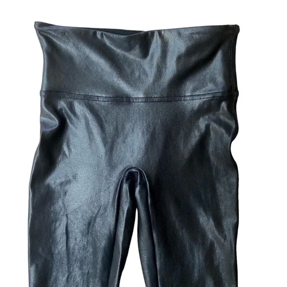 SPANX Faux Leather Leggings Black Size Small S/PStyle No. 2437Sleek and smoothing faux leather fabric shapes and liftsContoured Power Waistband for core compressionCenter-seam free for no more camel toeHigh-waisted designDress up or downInseams: Petite 28” (recommended for 5’4” and under)Body: 87% Nylon, 13% Elastane With Polyurethane Coating and Lining: 80% Polyester, 20% ElastanePreowned and in great used condition. No issues. Only worn once. 5899-7/23T749