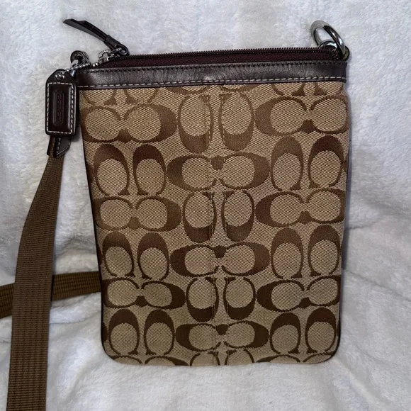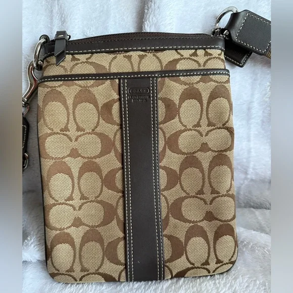 Coach Brown,Tan and Black Messenger BagCrossbody Bag with Monogram Pattern EUC