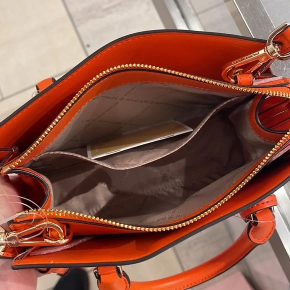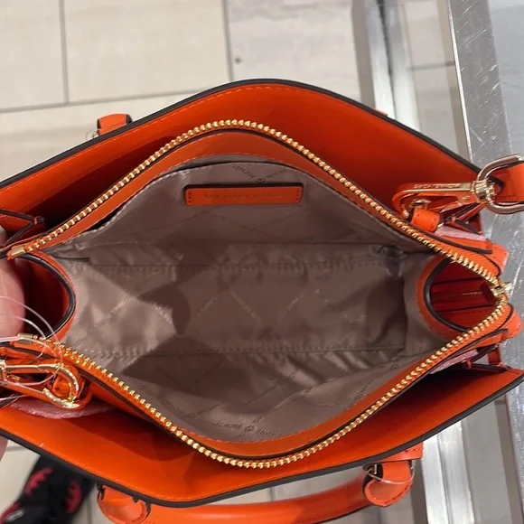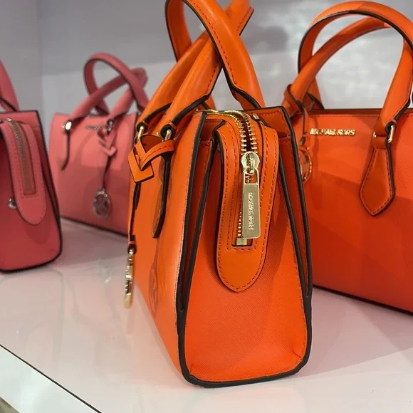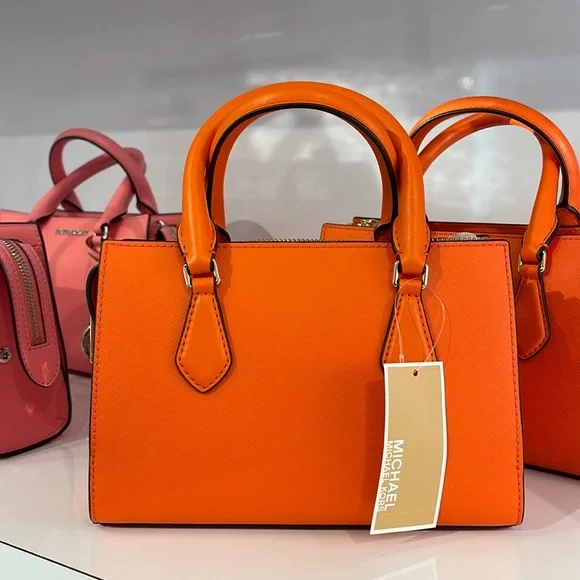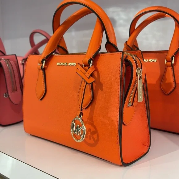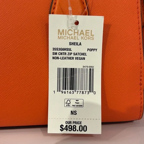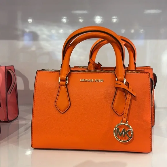 MICHAEL KORS SHEILA SMALL CENTER ZIP SATCHEL/CROSSBODY POPPY COLORNWT authentic Day or night, the Sheila satchel is always chic and ready to go. This faux Saffiano leather bag is...