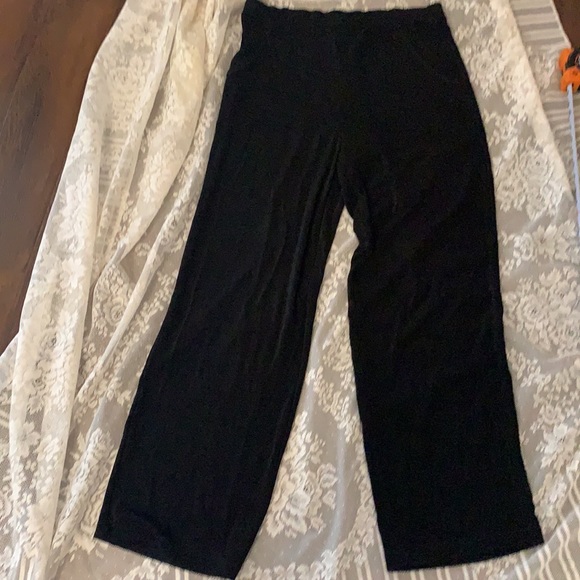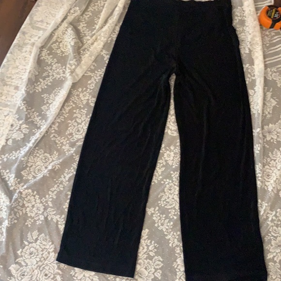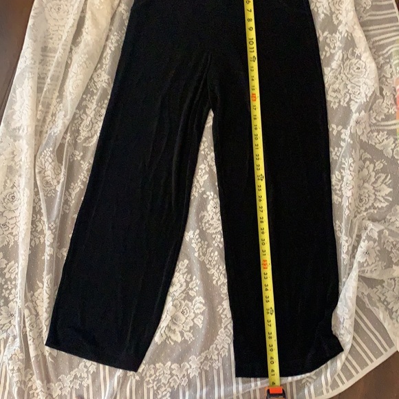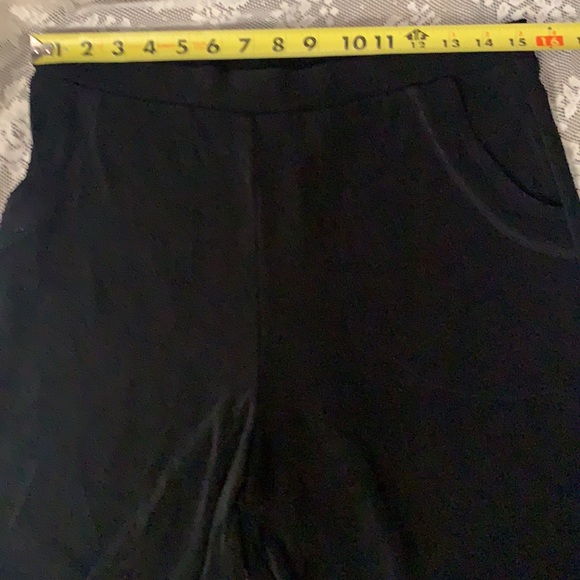 CHICOS TRAVELERS SZ 1 Regular (Equivalent to woman’s Sz 8, see last picture for Chico’s conversion chart) BlackPANTS.NEW NO TAGS.WAIST 15”. STRETCHES TO 21” SIDE TO SIDE. INSEAM 29”.BILATERAL POCKETS. WIDE LEG CUFF 9” SIDE TO SIDE.ELASTIC WAISTBAND THICKNESS 1”. MATERIAL ACETATE SPANDEX BLEND. —————-T2 cL brobxv