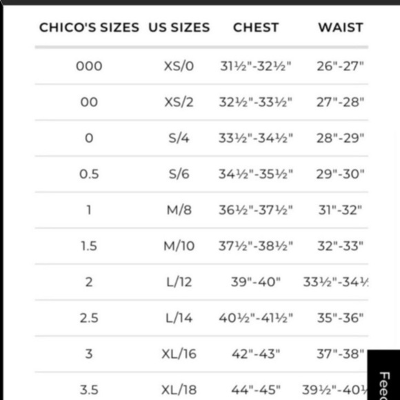 CHICOS TRAVELERS SZ 1 Regular (Equivalent to woman’s Sz 8, see last picture for Chico’s conversion chart) BlackPANTS.NEW NO TAGS.WAIST 15”. STRETCHES TO 21” SIDE TO SIDE....