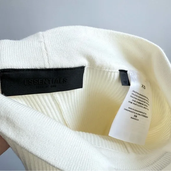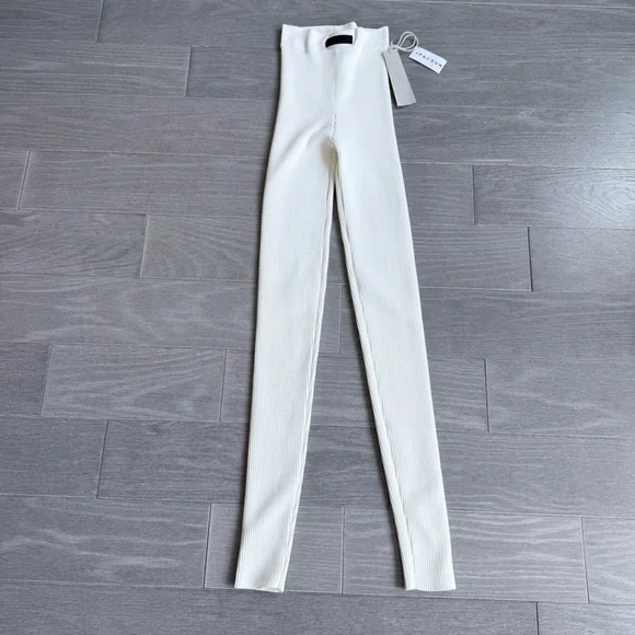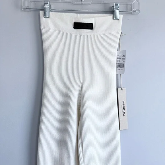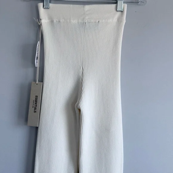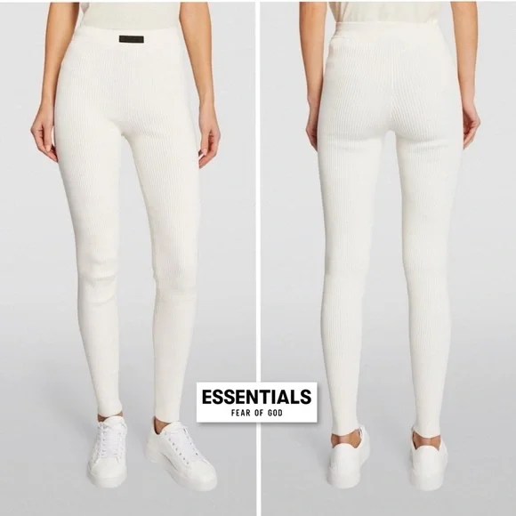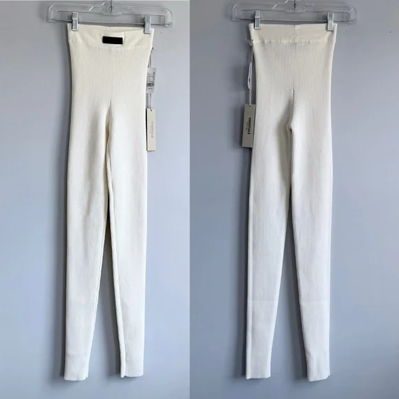 NWT Fear of God ESSENTIALS Off White Patch Leggings XS Ivory Ribbed Knit Pants