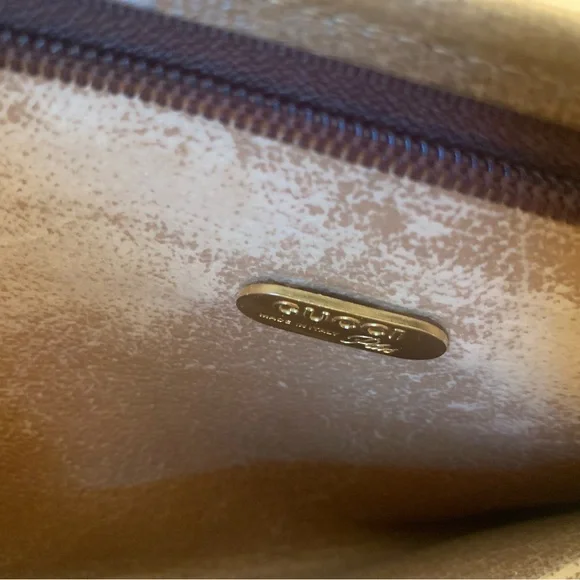 Preloved GG clutch. Has beautiful authentic emblems that are golden. Clutch arrived to me in beginning stages of powdery peeling on walls inside. I cleaned and conditioned the bag...