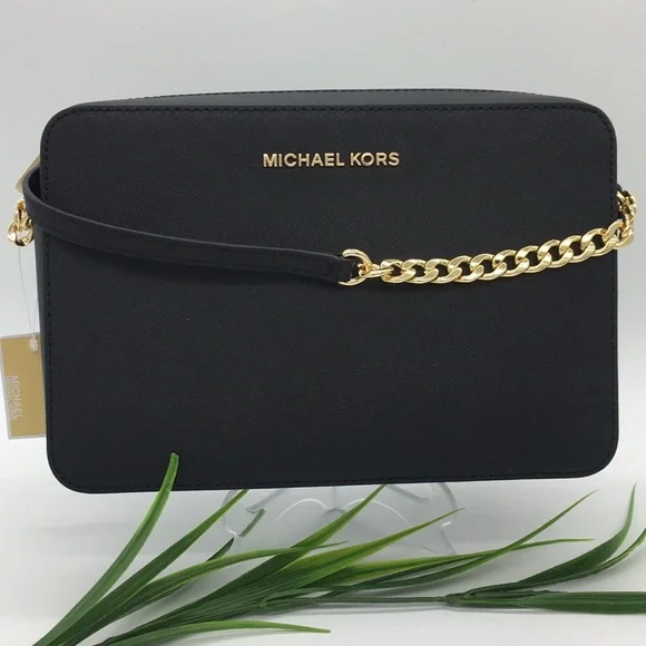 MICHAEL KORS JET SET ITEM LG EW CROSSBODY BLACK GOLD