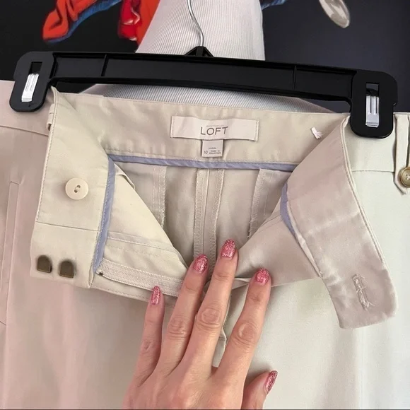 Ann Taylor Loft: Light Khaki Straight Legged Business Casual Cropped Capris/Trousers Size 10Style: 158-258547 ID#70026Materials: 98% Cotton, 2% Spandex Stunning quality.Easily dress up or down with a change of tops, designer shoes or jewelry. Nice button detailing on the bottom of the belt loops. Fabulous for work, play or date night. Versatile khaki will go with so much in any closet. They would make fantastic traveling pants as they can be styled so many different ways. All pockets on the pants can be functioning should you choose to let out the thread.Button with two eyelet and zipper closure. Pants have some light stretch. Measurements are approx (taken flat)Waist: 17.5 inchesLength: 34 inchesInseam: 24 inchesRise: 10 inchesEUC- minimally used with an entire life left to live.One light mark That will most likely come out with a stain remover. See photos.Use zoom to see intricate details/wear in photos and ask questions prior to purchase.Make sure to follow me here and on Instagram at Amelies_Armoire. I post many new items daily plus offer bundle pricing. I am looking forward to working with you! Thank you for supporting my small business.P.S. New to ? Use signup code “amelies_armoire” for $5 off!