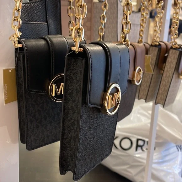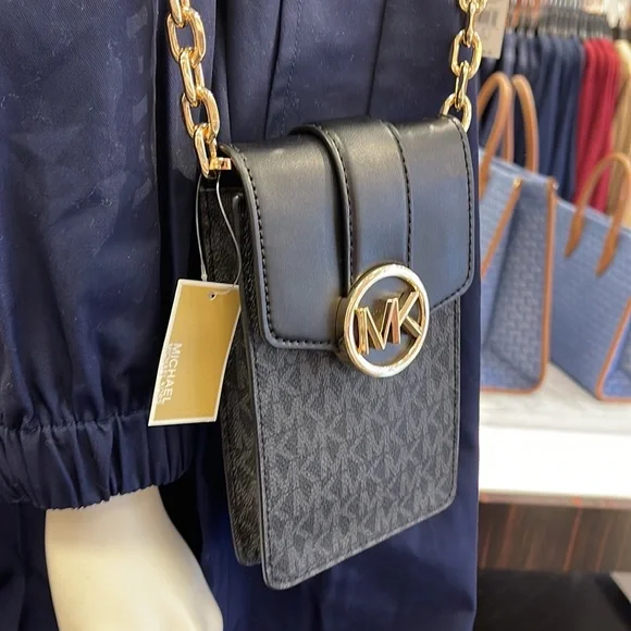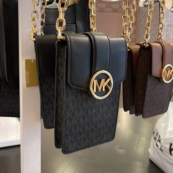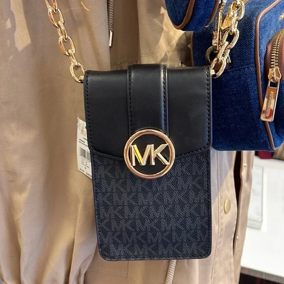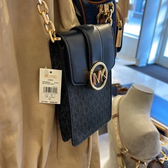 Michael Kors Carmen Small Logo Smartphone Crossbody BagBlack Reimagined in a shrunken silhouette, this version of our beloved Carmen bag will stylishly keep your phone and card...