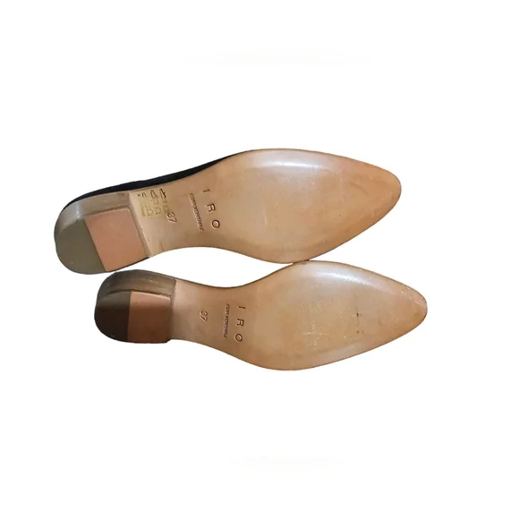 IRO Yvette Booties Size 37/6.5 US NWOBBooties are new, without box. Minor scuffing noted on soles. Likely tried on at store. Some sticker residue noted on left boot. Please review photos carefully. They serve as part of the description. Love the item but not the price, make an offer. The IRO Yvette Booties are a new ultra versatile update on the classic Chelsea style boot. Constructed from a soft suede these leather shoes feature a stacked wooden heel, pointed toe and elasticated gusset for an easy pull on finish.---- FABRIC OR COMPOSITIONSuede leather Upper, 100% Leather inner and soleSIZE AND FITThe IRO YVETTE BOOTIES in BLACK are true to size. Heel Height: 2in / 5cmBRANDSince IRO Paris reached the shores of Australia, it has become a cult brand renowned for its unique street style. The brainchild of Parisian brothers Laurent and Arik Bitton, IRO is inspired by their passion for music and fashion. Best loved for their IRO leather jackets and IRO jeans, the brands style is epitomised by classic Parisian chic combined with rugged street style. Draped mini skirts, luxurious leather jackets, and sexy skinny jeans, IRO is the womens clothing brand for those that want to make an impact with their style.