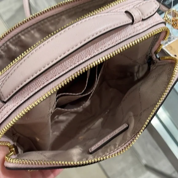 Michael Kors Women Medium Double Zip Phone CrossbodyLight Powder Blush NWT