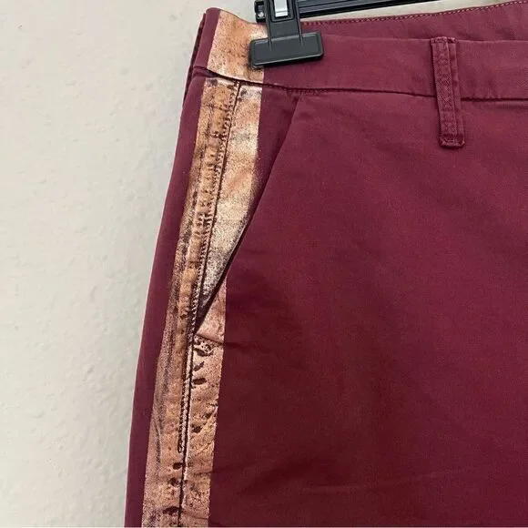 In great pre-owned condition Size: 31Color: Dahlia RosegoldHigh riseStraight legFront pockets and back flap pocketsFront zip with hook and bar closureBuilt-in belt loopsRaw hem...
