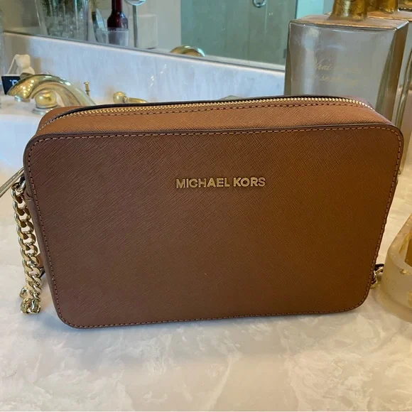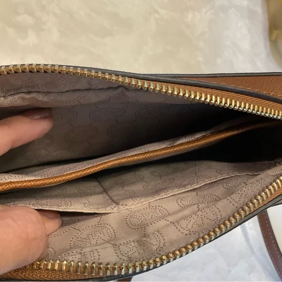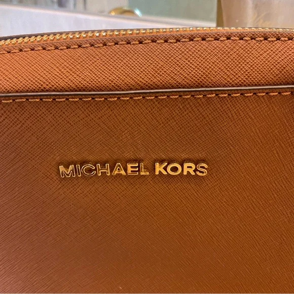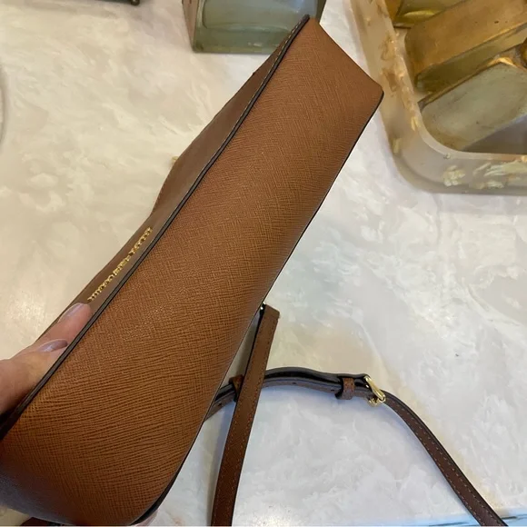 Michael Kors Crossbody / Shoulder bag, Pebbled leather, 9” x 7”, saddle color