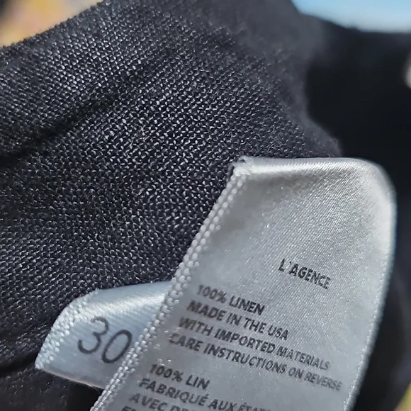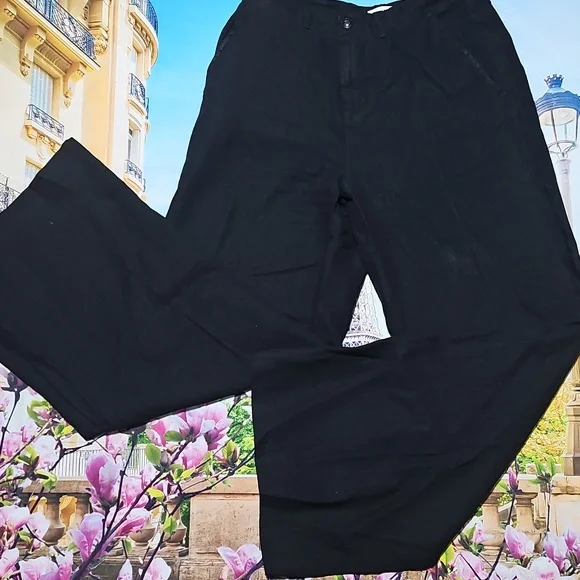 L´agence Black Wide Leg High Waist Linen Pants Size 30