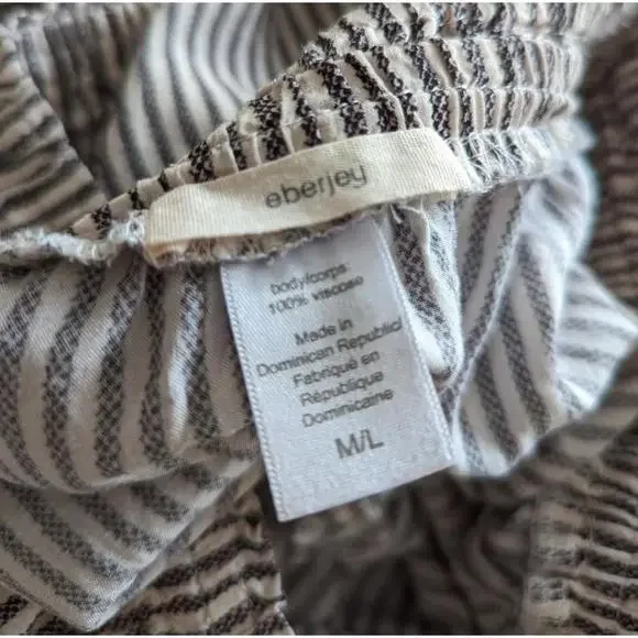 Eberjey Sea Stripe Off The Shoulder Romper Black & White Striped Medium Large