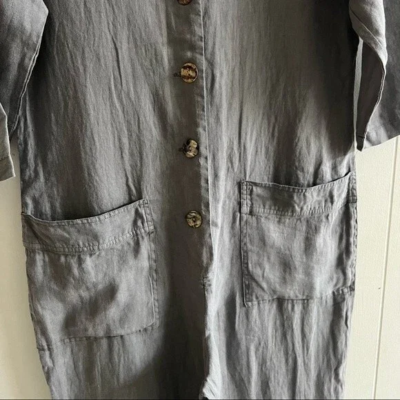 Zara Gray Lillian Linen Button Front Romper/Jumpsuit NWT