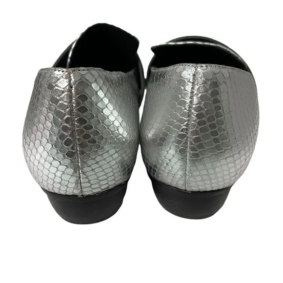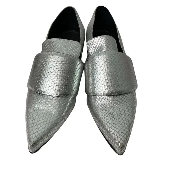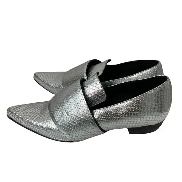 Rodarte Shoes Size 38.5 US 8.5 Silver Metallic Snakeskin Embossed Pointed