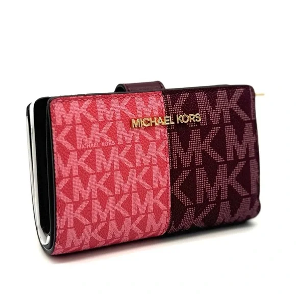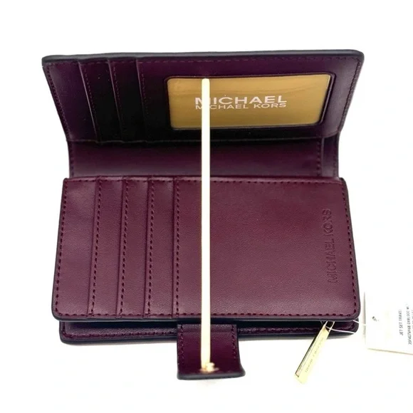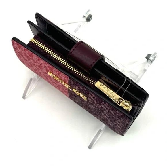 Michael Kors Medium Bifold Zip Chain Wallet Ox Blood Multi