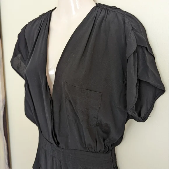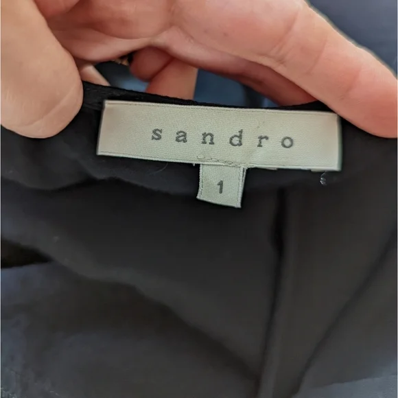 very good used conditionsandro Paris short romperrelaxed fitshort sleeveelasticated waistv neckside zipperdesigner one piece outfit stylish trendy