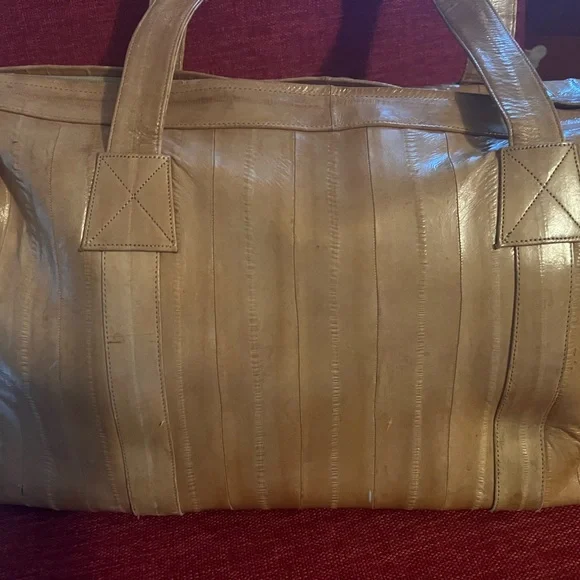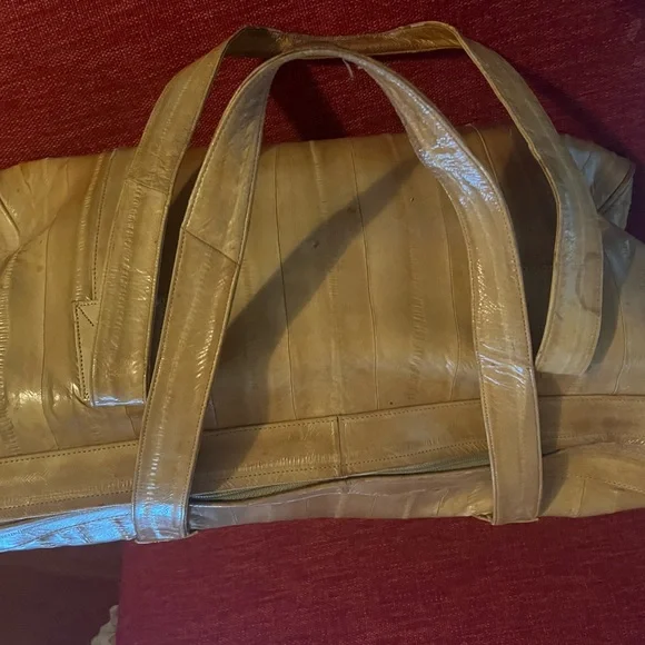 “Leather of The Sea” vintage Champagne color Eel skin duffle is a find! This company has been around for many years and produces exquisite pieces!! It’s shown in true light...