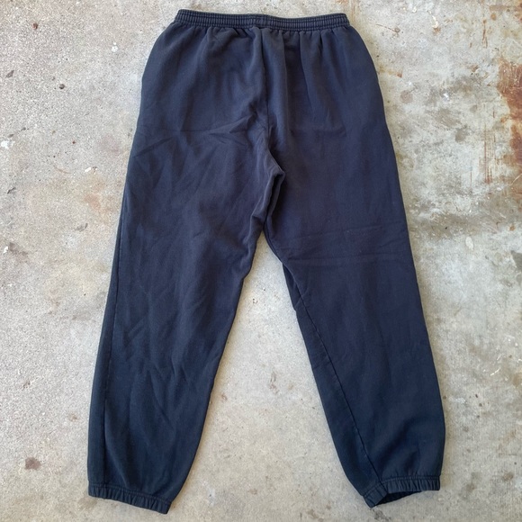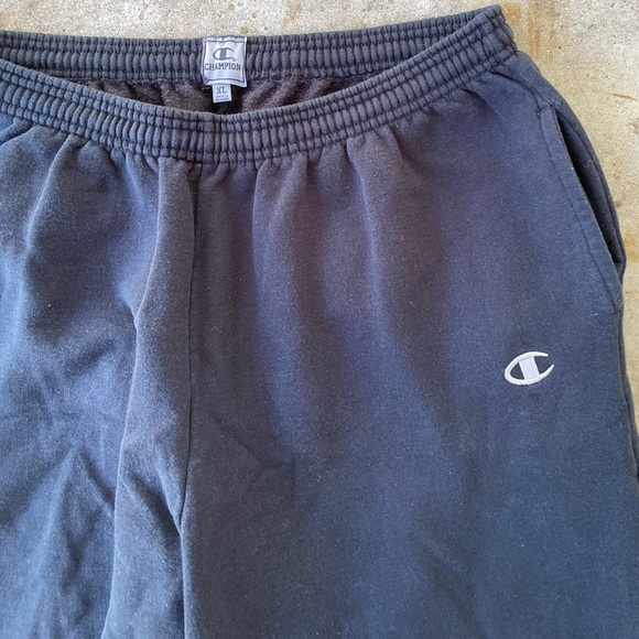 size XLlightly faded black wash high rise sweatpants with pockets and embroidered Champion logo on the frontmeasurementswaist - 32"rise - 13"inseam - 32"leg opening - 6.5"