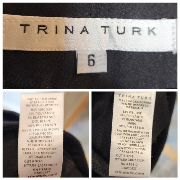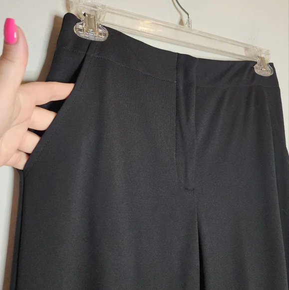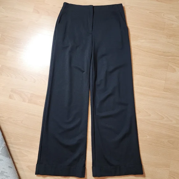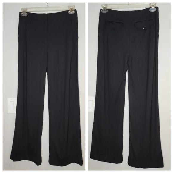 Truna Turk Cohen 2 Pant Cozy Ponte. (IMO kind of like a mix of ponte knit and drapey jersey knit.) Size 6.listing as a petite with a 30" inseam.(original should´ve been 32")see photos for approximate measurements to ensure fit. excellent pre-owned condition.although I think they may have been professionally altered to a 30" inseam.see pics for reference.no stretch waist. stretch thru the legssewn cuffside and back pocketsSophisticated and timeless, these tailored pants are ideal for polished style, all year long. Pair these wide-leg pants with a fun print for a bright look.Hook and zip closureSide slash pocketsWide legCozy Ponte63% Rayon, 32% Polyamide, 5% ElastaneStyle# 2407513CP11lb 5oz10614