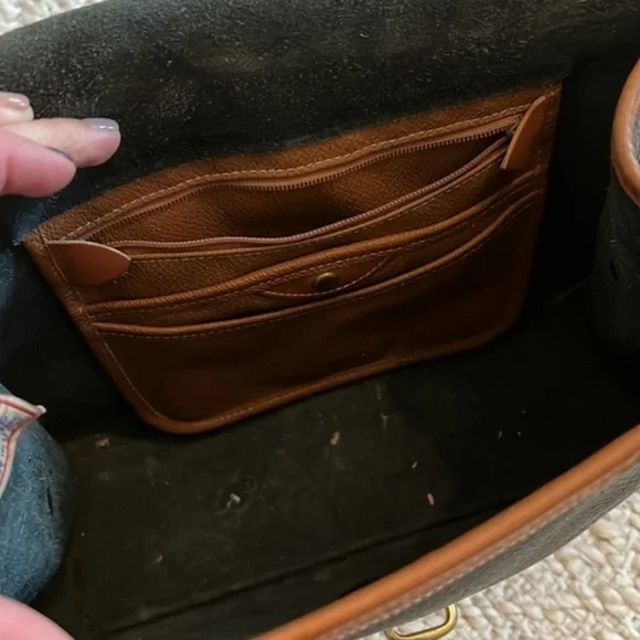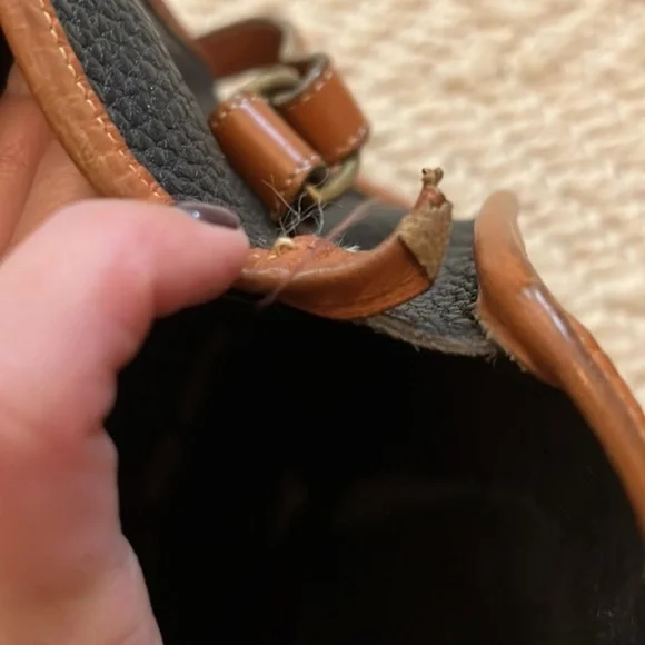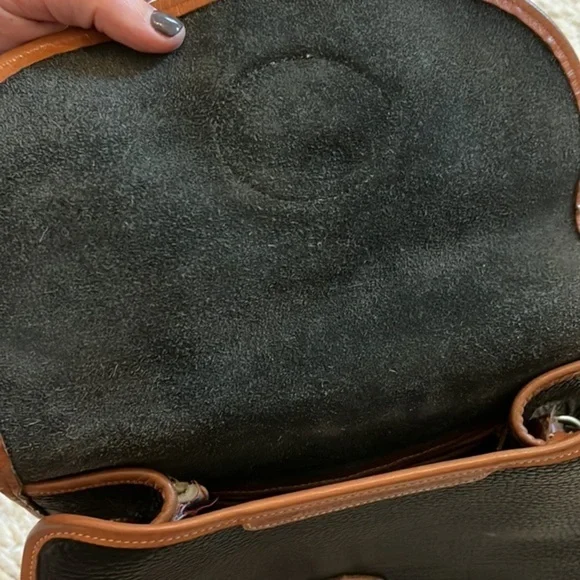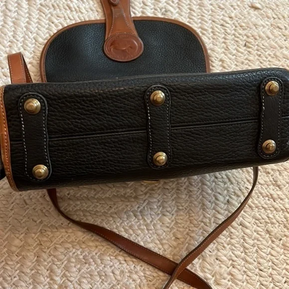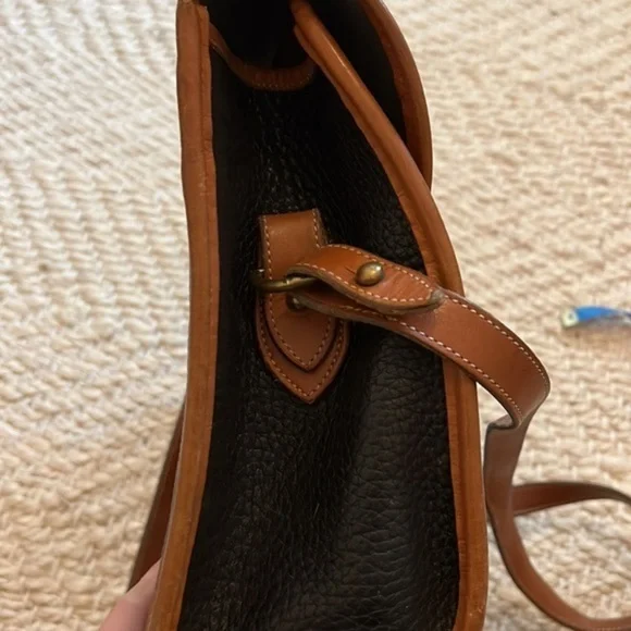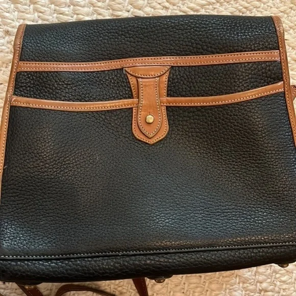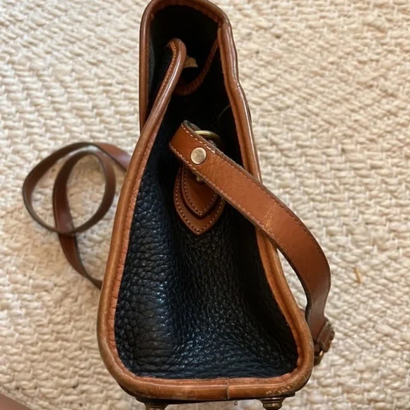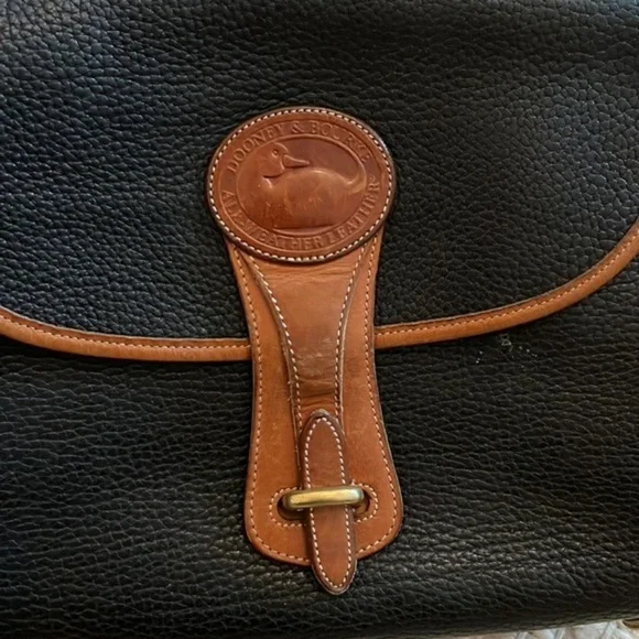RARE VINTAGE DOONEY AND BOURKE ALL WEATHER LEATHER CROSSBODY BAG RETIRED STYLE AND MAKEDefinite signs of wear, but truly still in great condition to be used for many years to come!Classic piece with both black and brown leather and a solid brass buckle - goes with any color outfit!Plenty of space inside the bag for wallet, phone, and other items Measurements (Approx) :H: 8in W: 3in L: 11in