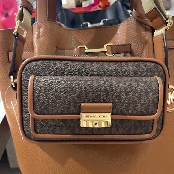 Stylish and versatile, this Michael Kors crossbody bag in brown is perfect for any occasion. Its sleek design and adjustable strap offer both comfort and elegance.Michael Kors...