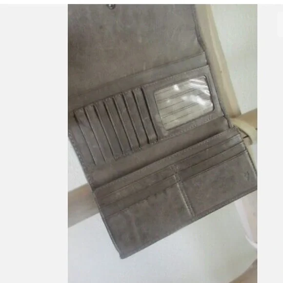 FRYE euc Fabric type 100% LeatherOrigin ImportedOuter material LeatherInner material CottonAbout this itemFRYE WALLET: An antique leather wallet from Frye´s best-selling Melissa collection, perfect for ultimate storageULTIMATE STORAGE & CONVENIENCE: This wallet features 2 slip pockets, 1 zip pocket, 1 exterior pocket, 1 ID window, and card slots for ultimate storage and conveniencePREMIUM MATERIALS: Made with 100% leather for durability and a luxurious feelTHE PERFECT GIFT: Frye women´s bags are a great accessory to gift for a Birthday, Christmas, Holiday, Graduation, Mother´s Day, and moreFRYE: Frye offers a range of stylish and quality handbags, from trendy leather backpacks to crossbody bags and wristlets. Elevate your wardrobe today with Frye women´s handbagDescriptionWith sophisticated and stylish designs, you´ll enjoy Frye handbags for years to come. Our women´s leather handbags are crafted from top-quality leather with careful attention to detail.Last two pics for reference only not included