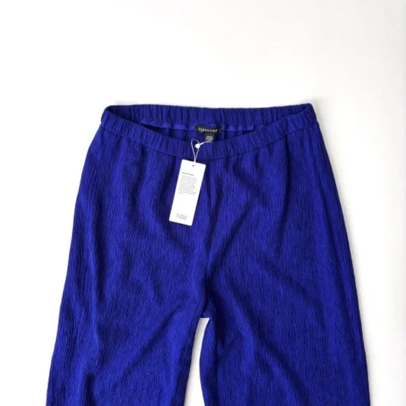 This listing is for Eileen Fisher pants. They are new with the tagWide Ankle PantsWoven PlissePull on CrinkleAnkle side slit65% tencel lyocell, 34% recycled polyester, and 1% spandexColor: Blue Violet